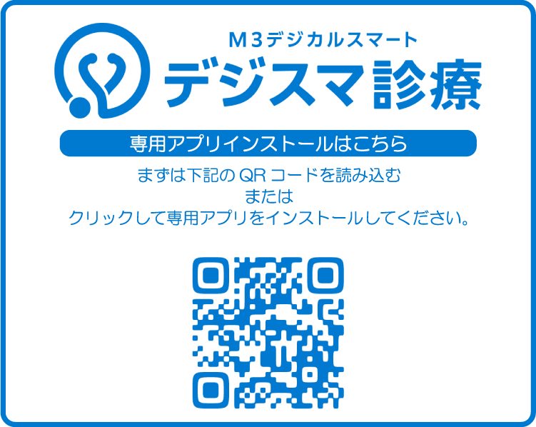カメラでQRコードを写して、「デジスマ診療」をダウンロードします。上記のデジスマ診療のサイトからでもQRコード、App Store、Google Prayからダウンロードが出来ます。