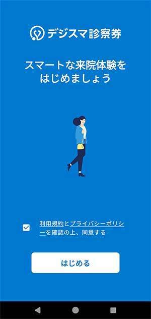 「次へ」を押し進め、利用規約等を確認、チェックを入れて「はじめる」を押します。