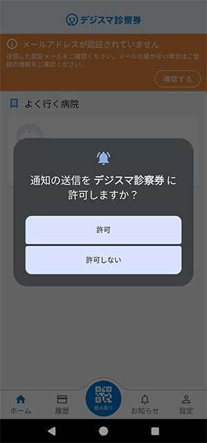 登録完了です。アプリからの通知を受ける場合、「確認」を押し、ポップアップが表示されたら「許可」を押します。