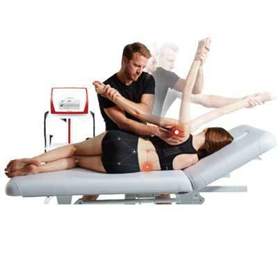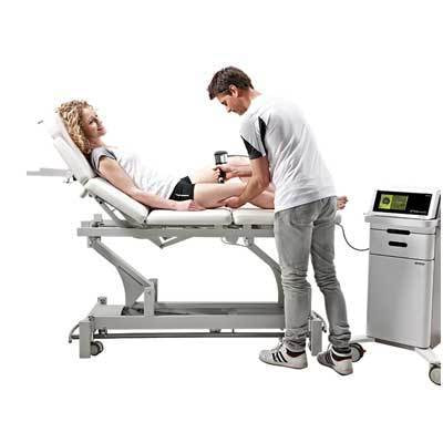 ▶瞬間的に高電圧の電流を流すことで、皮膚抵抗 を最小限に抑え、刺激感の少ない深部到達を可能にしたHi-Voltage電気刺激療法を行えます。リハビリでの筋萎縮改善や、筋力トレーニングに使用できます。