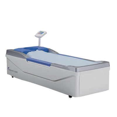 ▶肩専用Cubeノズルで3次元アプローチが実現!一般的に肩こりといわれている頸肩腕症候群治療に効果がある経穴は「肩井(けんせい)」と、その肩井が位置する僧帽筋上部です。アクアキューブは新技術を投入し、従来器の下からの水圧刺激のみでは不可能だった「僧帽筋上部」への刺激を可能にしました。