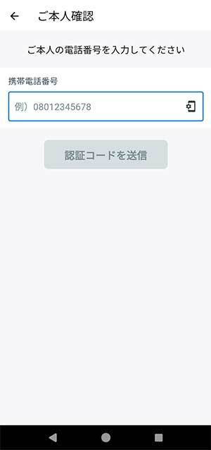 ショートメール(SMS)に届いた6桁の数字を入力します