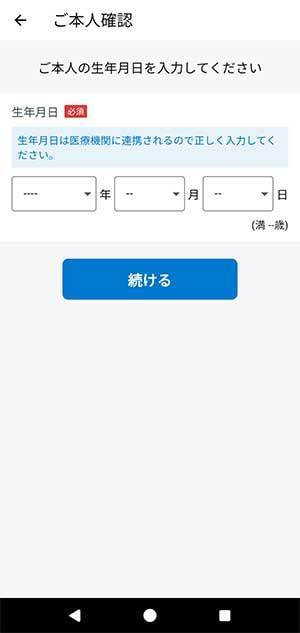 氏名、生年月日、性別、メールアドレスを入力して「続ける」を押します。