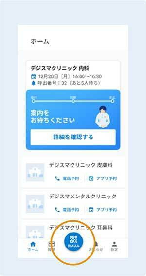 「デジスマ診療」アプリで受付にあるQRコードを読み取りチェックインしてください。