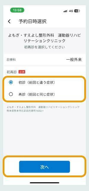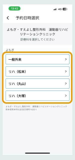 「一般外来」または「リハ」(担当者名)のボタンを押してください